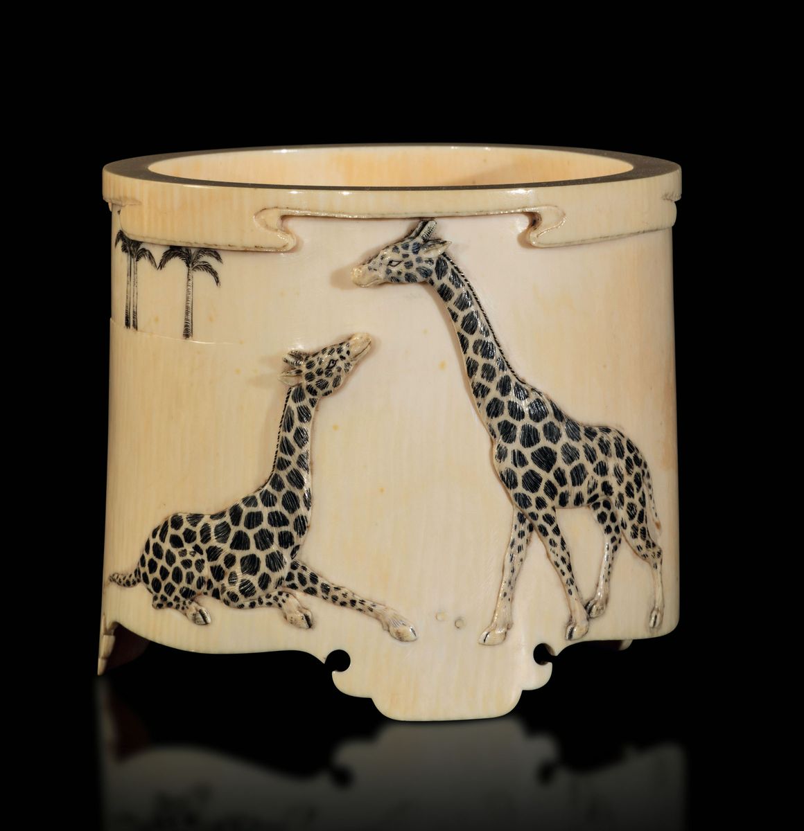 Two ivory brush pots, Japan, Meiji period (1868-1912)