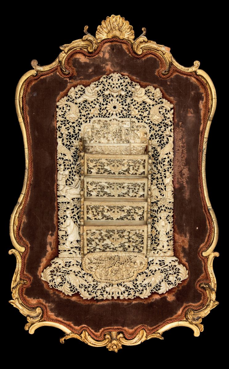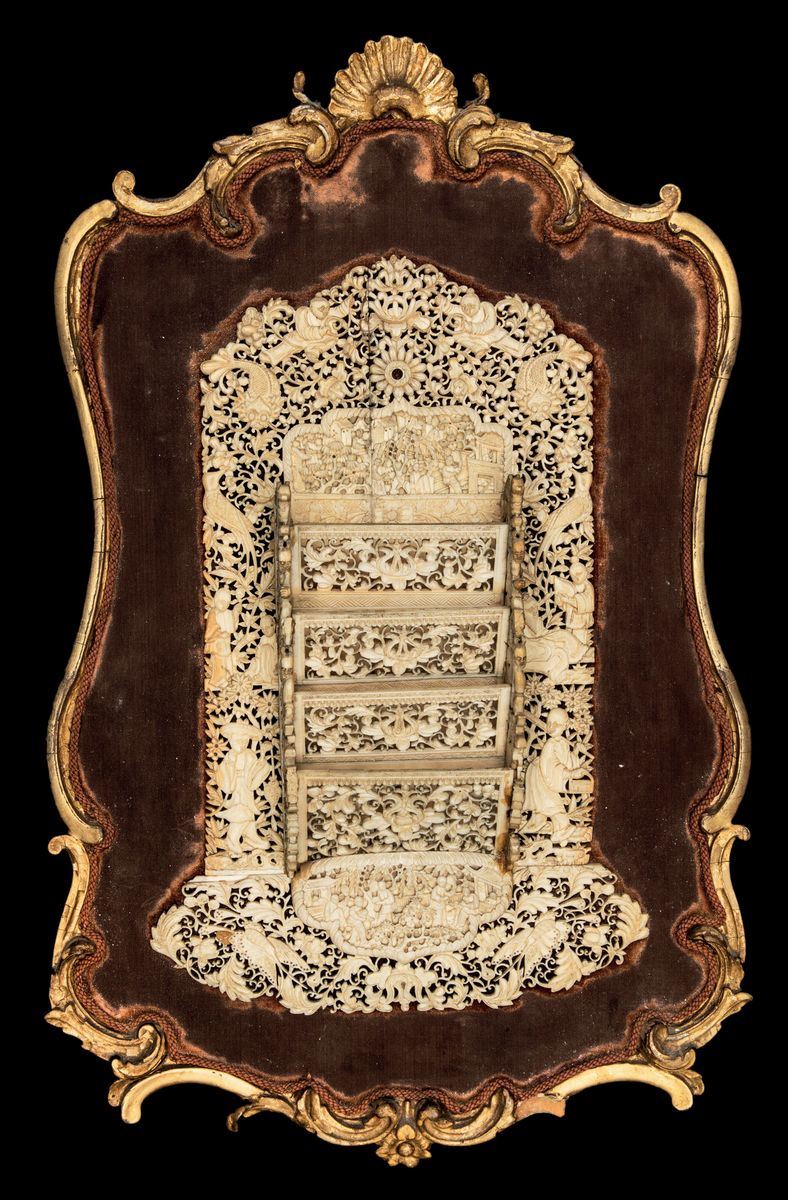 Finely carved and perforated ivory with naturalistic and everyday life decors. Daoguang period (1821-1850). 29x19cm