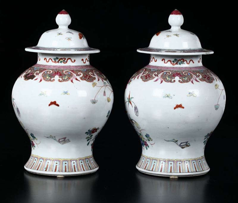 Two Pink Family potiches, China, Qing Dynasty
