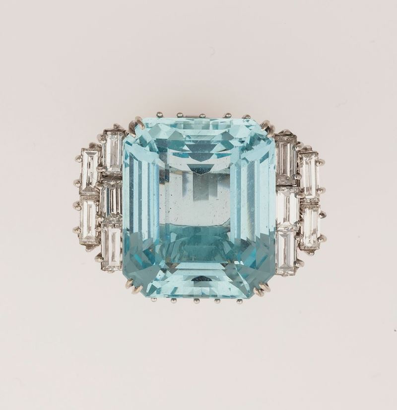 Aquamarine and diamond ring