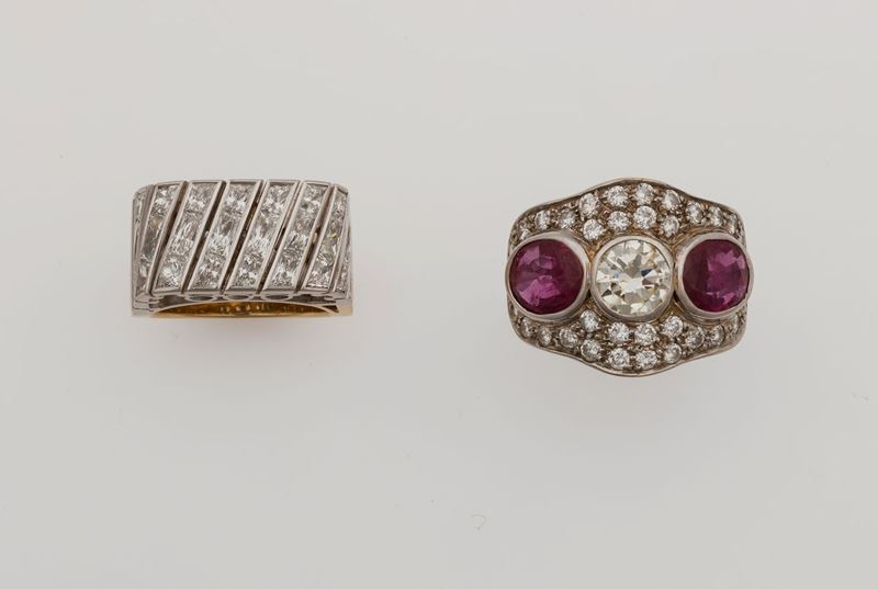 Diamond, gold and platinum ring. Signed Enrico Cirio