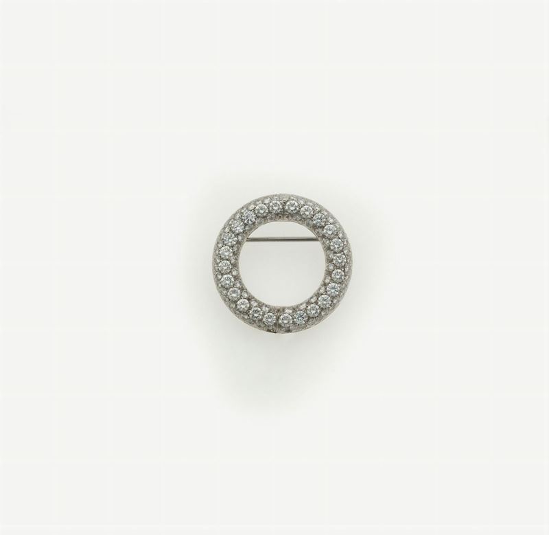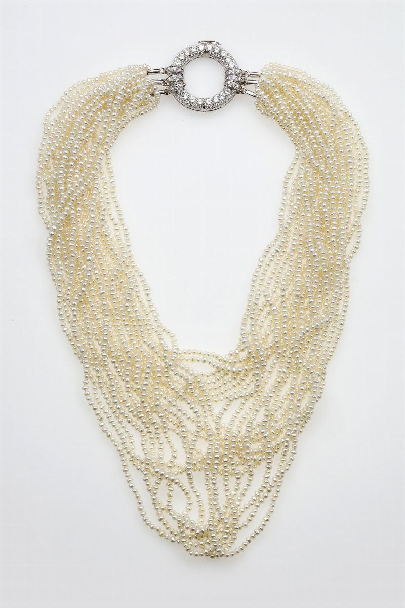 Pearls necklace with a diamond clasp/brooch. Signed Enrico Cirio