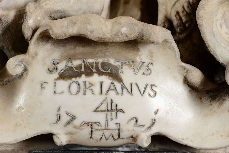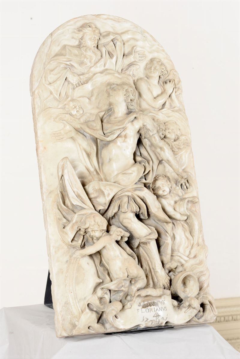 Beatificazione di San Floriano. Rilievo in marmo centinato, datato 1721. Arte barocca veneziana. cerchia di Giovanni Maria [..]