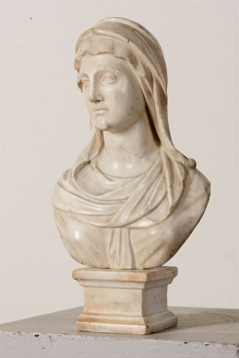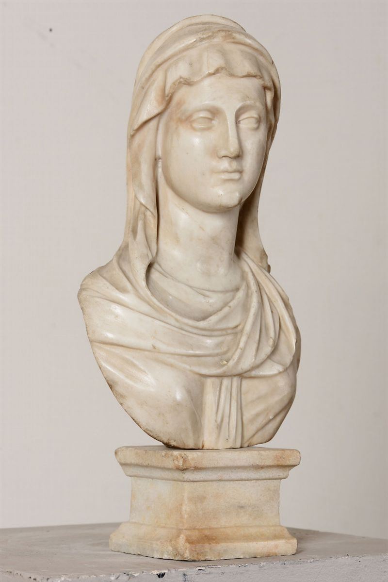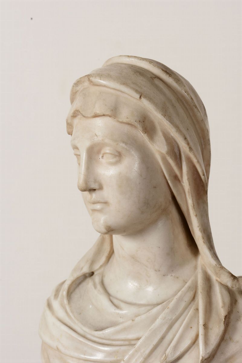 Busto di vestale in marmo bianco. Scultore barocco italiano del XVII secolo