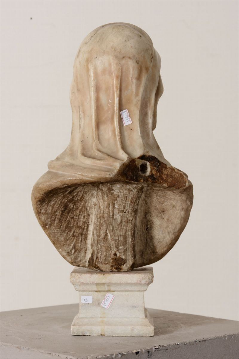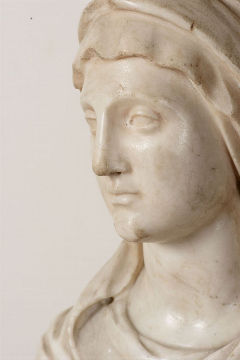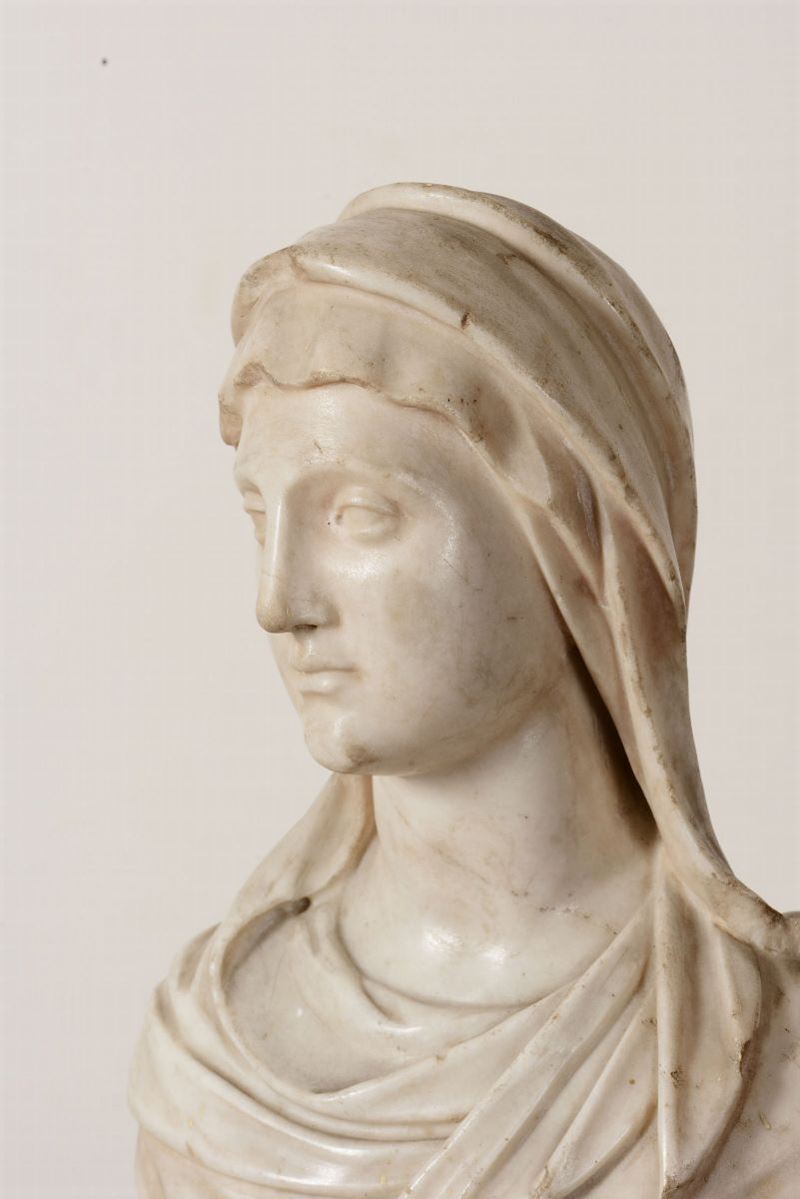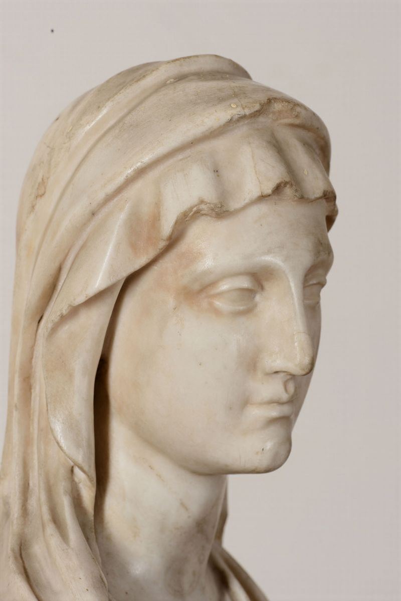 Busto di vestale in marmo bianco. Scultore barocco italiano del XVII secolo