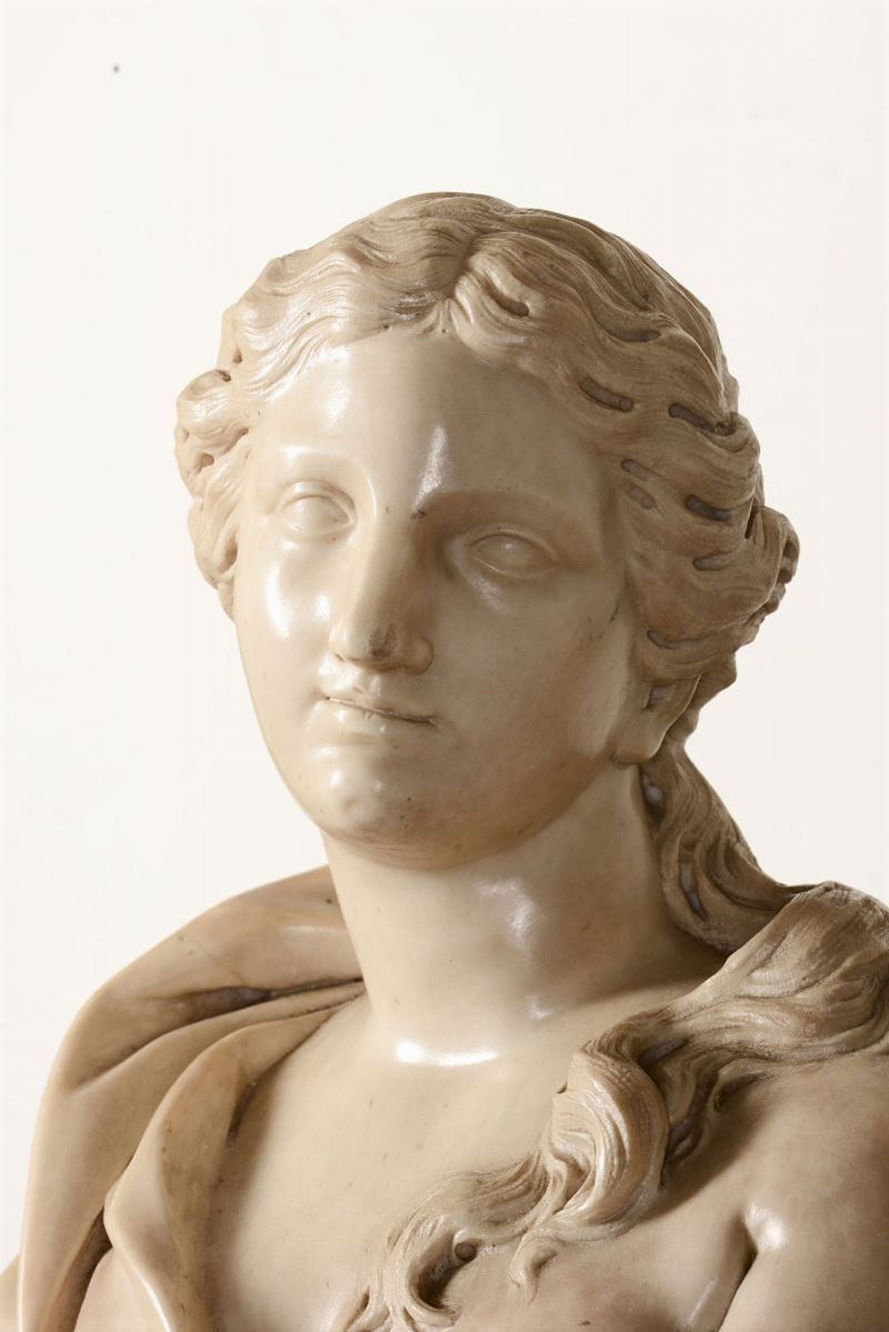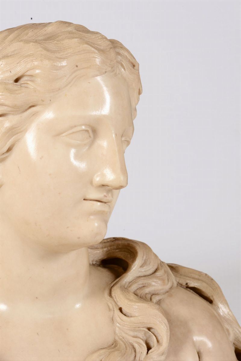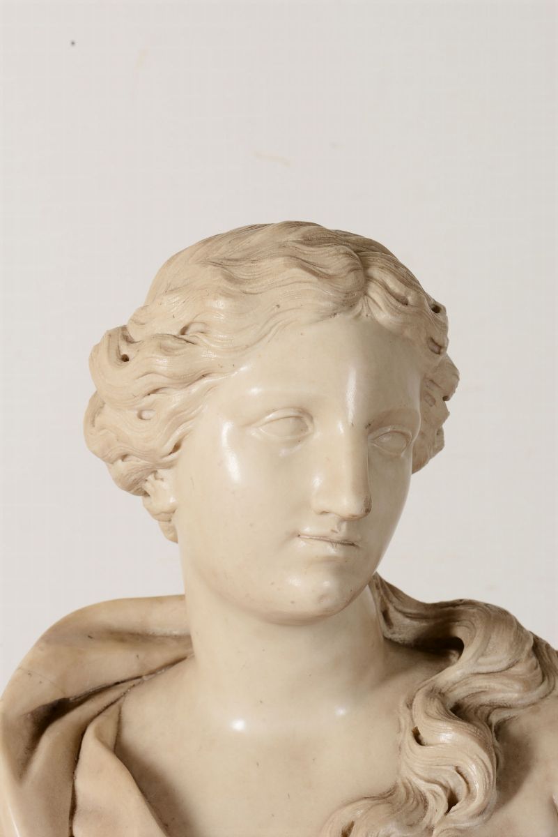 Busto muliebre in marmo bianco. Giuseppe Piamontini (Firenze 1663 - 1744), primo quarto del XVIII secolo