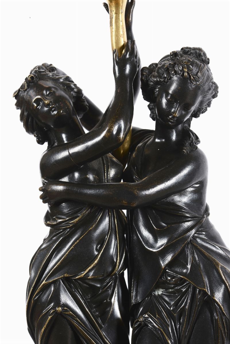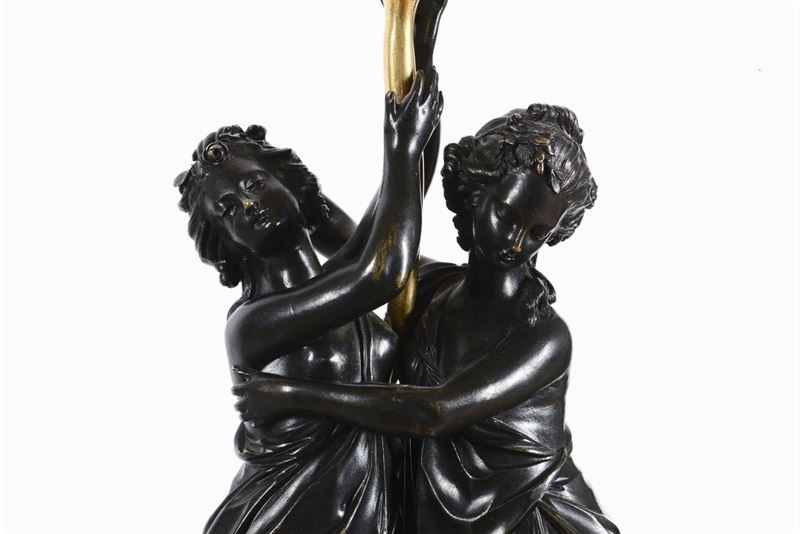 Coppia di candelabri in bronzo patinato e dorato, Francia, inizio XIX secolo