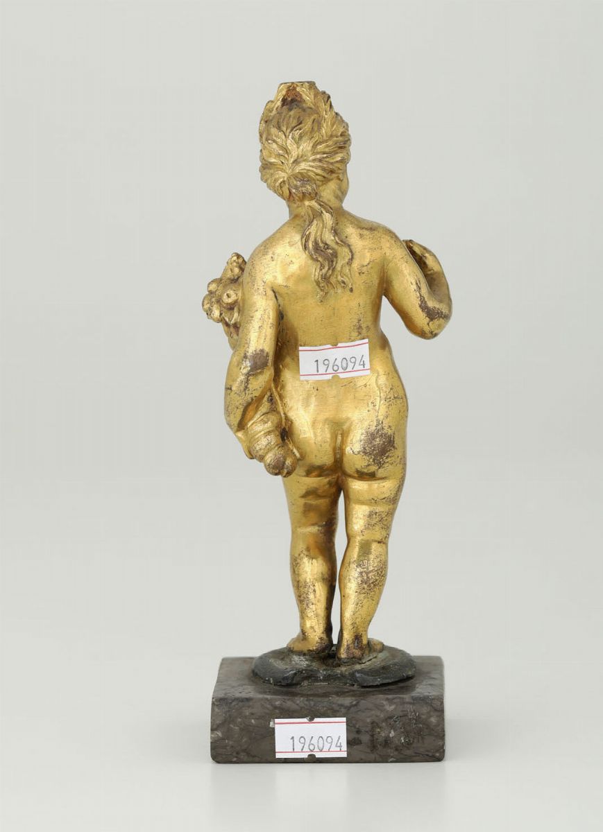 Figura di Eros con cornucopia. Bronzo fuso, cesellato e dorato. Fonditore rinascimentale, Veneto (?) XVI secolo