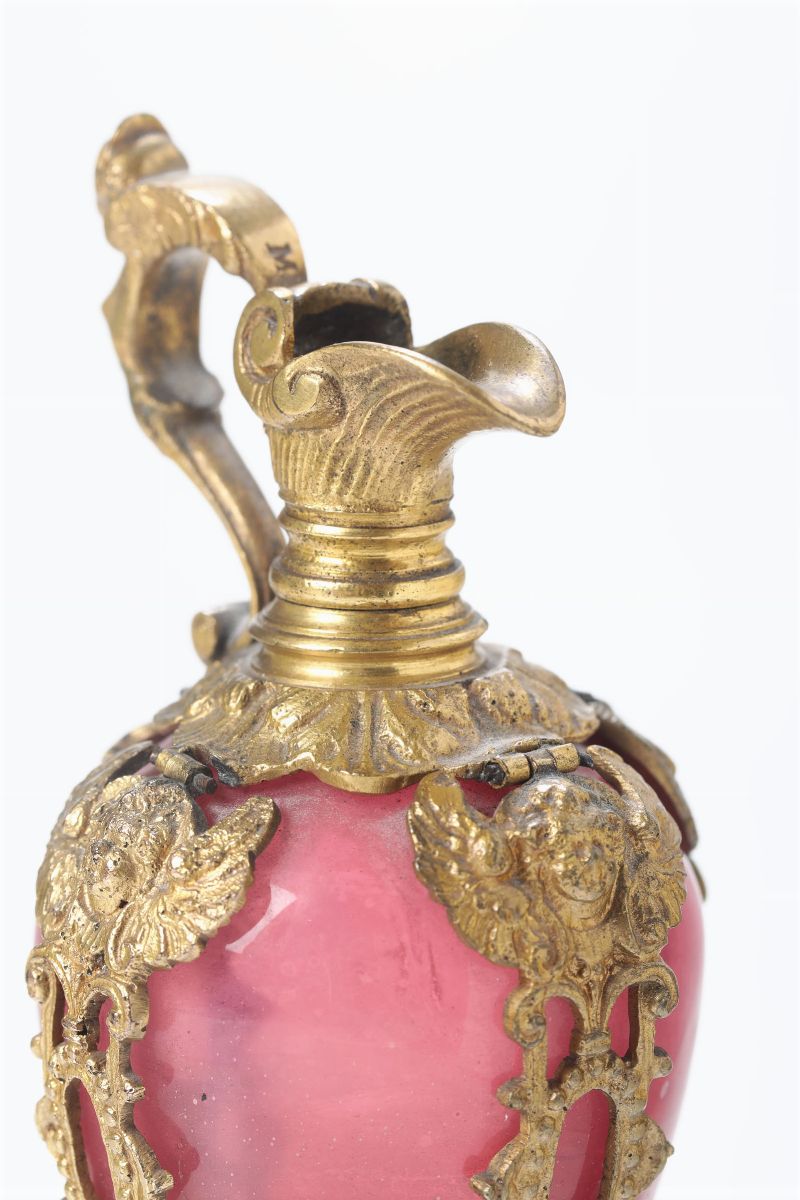 Versatoio in vetro soffiato colore rosso rubino e montatura in bronzo cesellato e dorato. Firenze o Pisa fine XVII inizio [..]