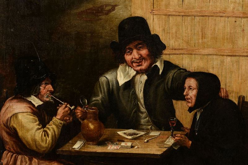 David Teniers ( Anversa 1610 - Bruxelles 1690), seguace di Scena con interno di osteria