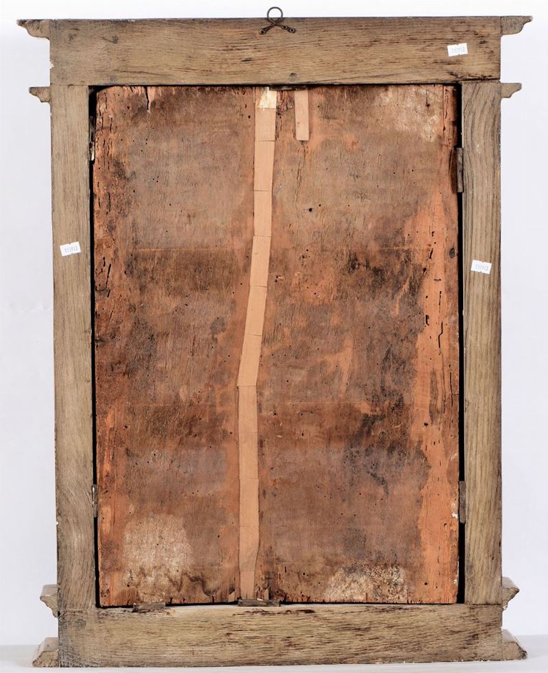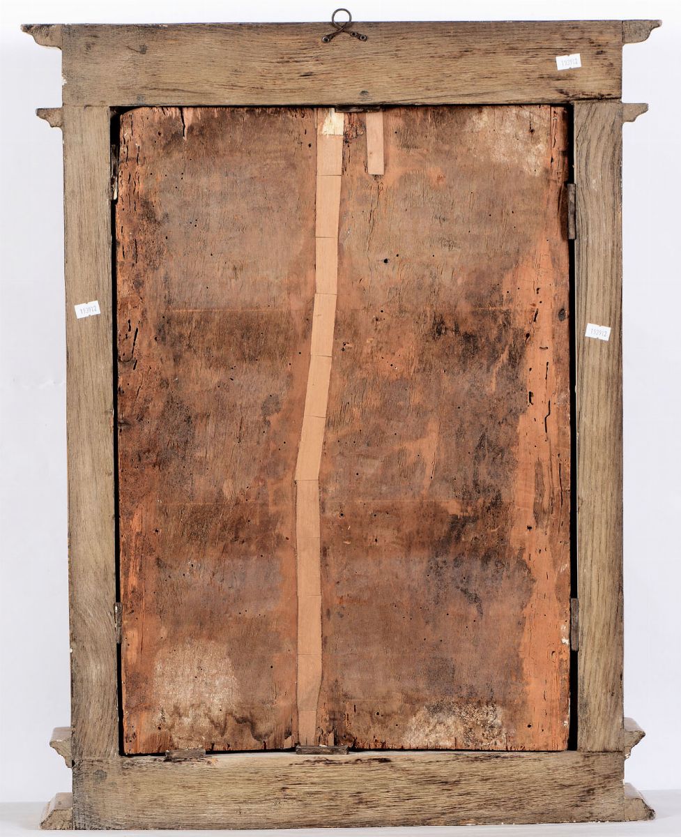 tempera su tavola a fondo oro, cm 58x42 entro cornice in legno intagliato e dorato