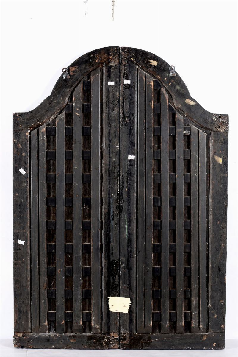 coppia di pannelli laterali di trittico a olio su tavola, cm 88x24 ciascuno