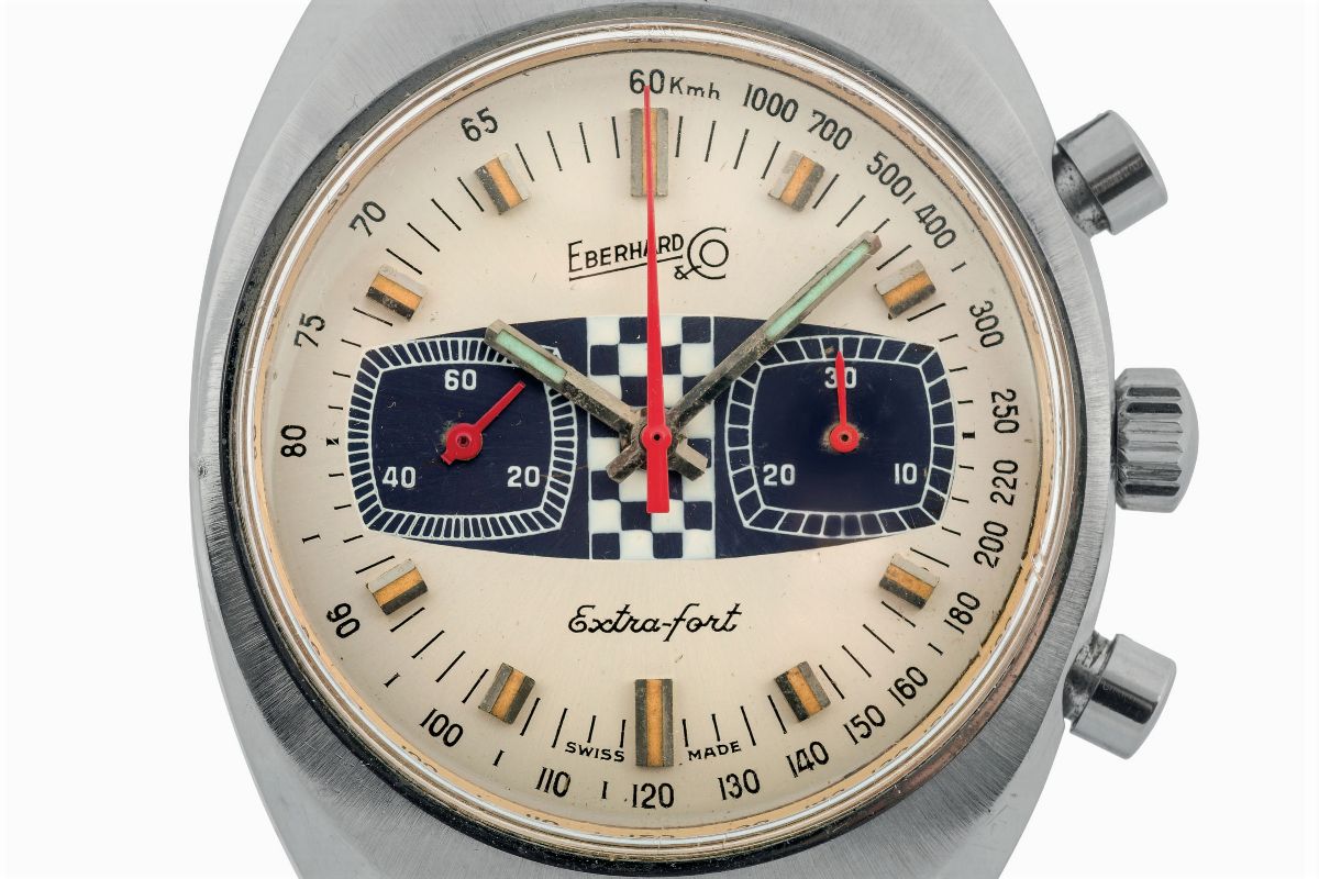 Eberhard & Co., Extra-fort, Ref. 34006. Fine, stainless steel, chronograph wristwatch with original buckle. Made circa 19 [..]