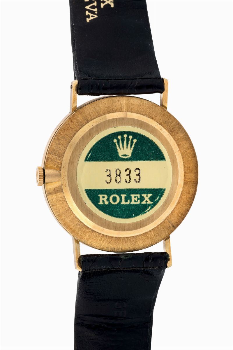 Rolex, Genève, case No. 4082539, Ref. 3833. Fine, flat, 18K yellow gold wristwatch with the Saudi Arabian emblem and a [..]