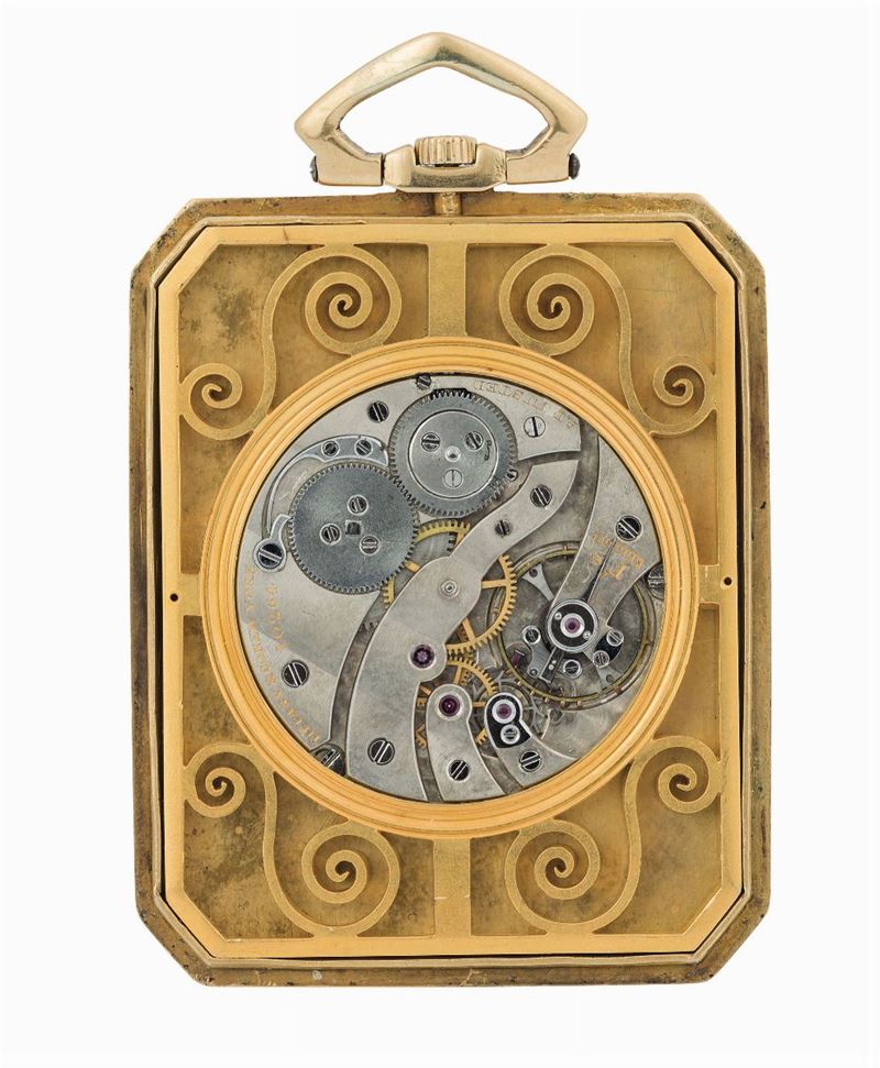 Tiffany & Co. Fine, rectangular, 18K yellow gold Art Decò dress watch. Made circa 1920