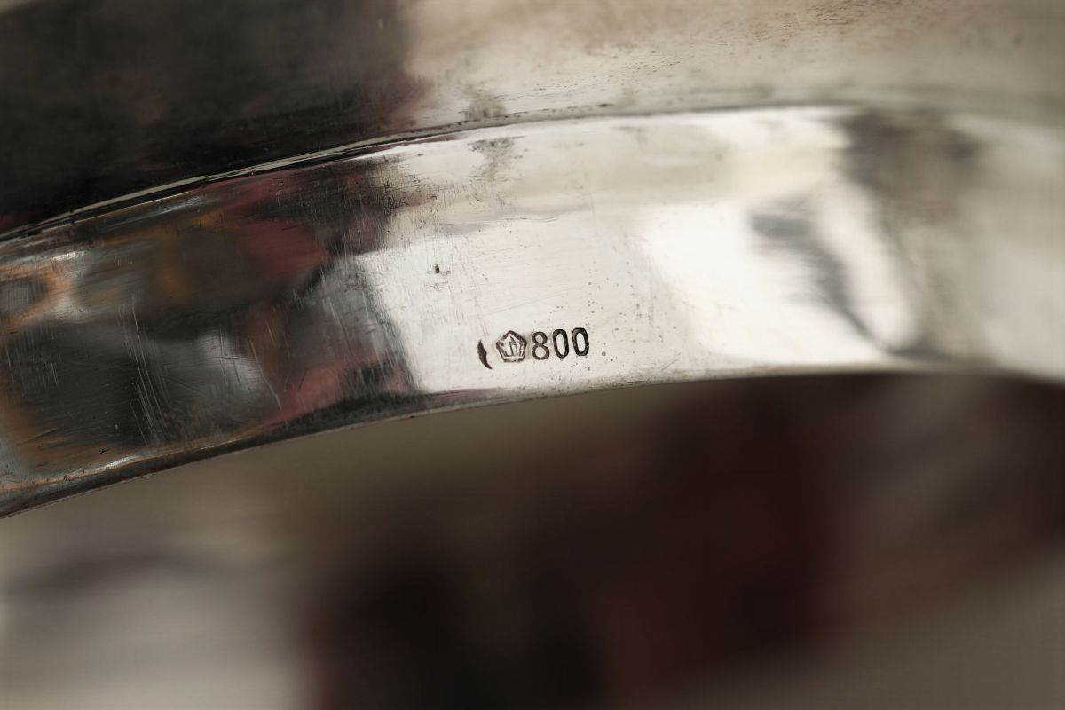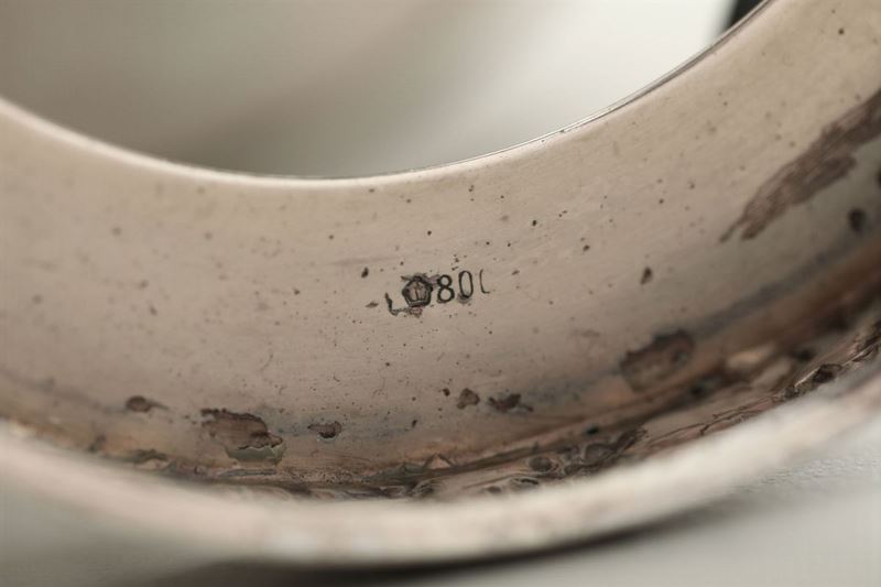 Molten, embossed and perforated silver. 1000gr, H 25cm
