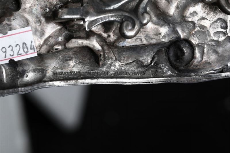 Molten and chiselled sterling silver. 550gr, 26.5x21cm