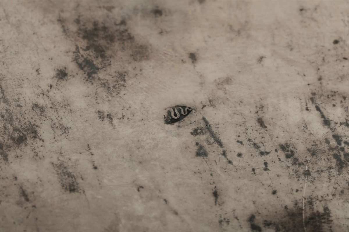 Molten and chiselled silver. 980gr, 24x19x10cm