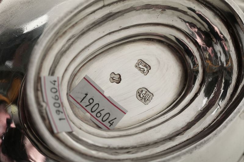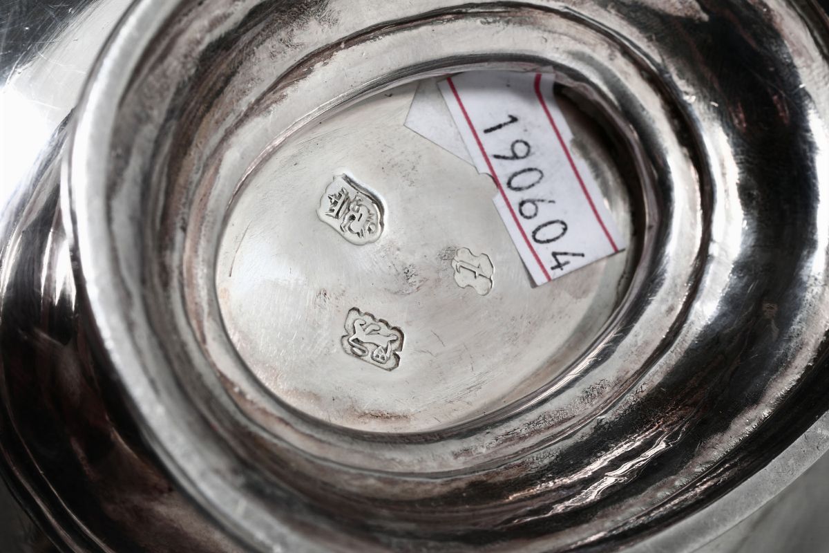 Molten and chiselled silver on the model created by great silversmith Paul de Lamerie. 1300gr, 25x18.5cm