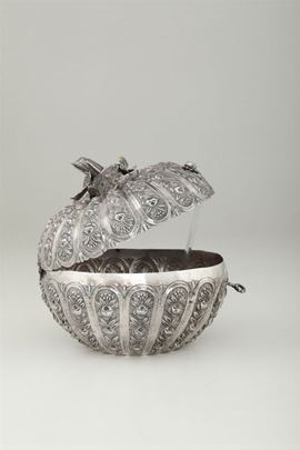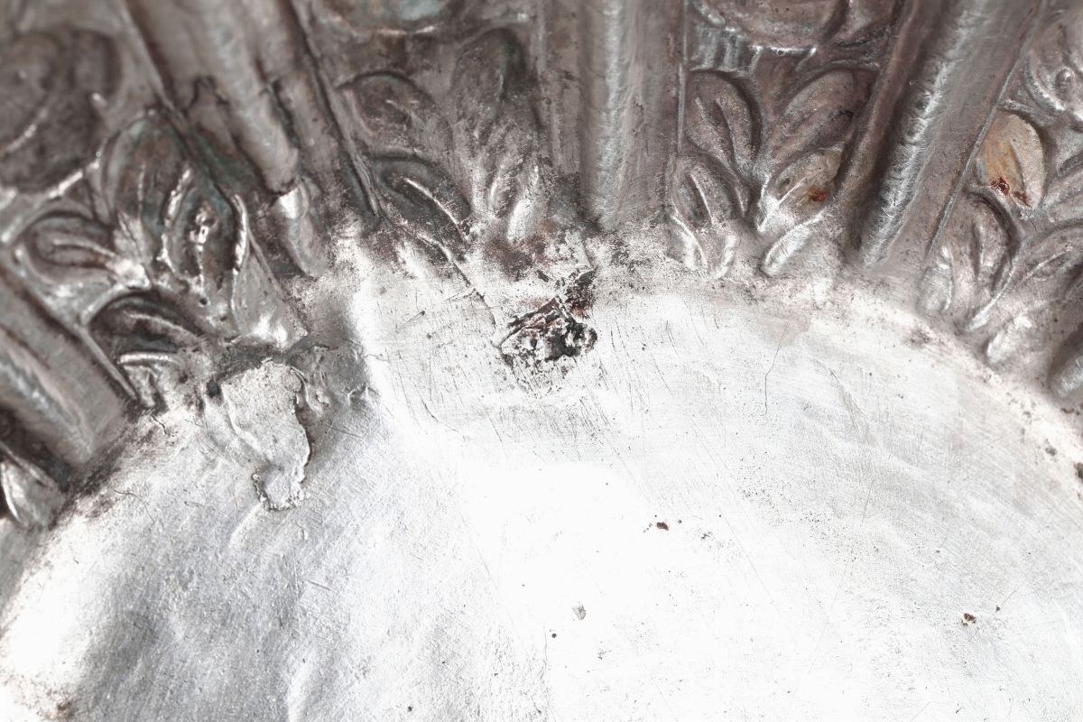 Embossed and chiselled silver. 685gr, diam 21.5cm