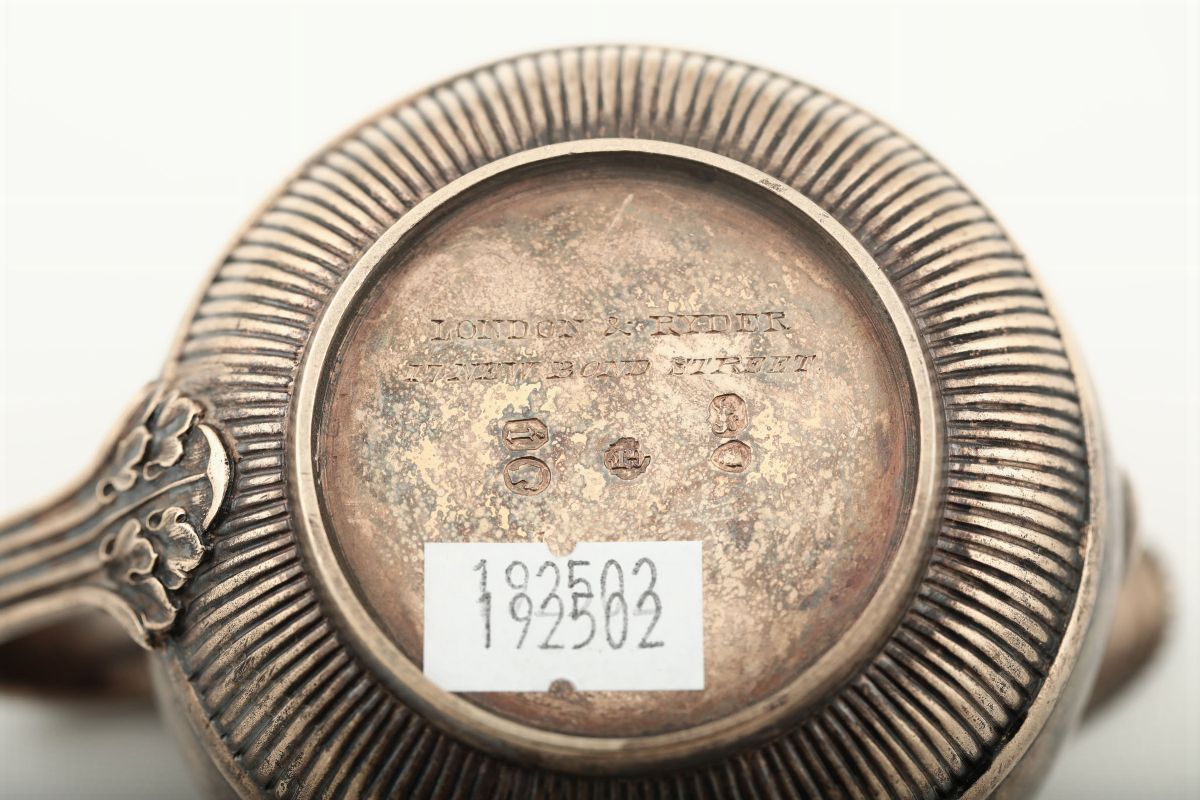 Molten, embossed, chiselled and perforated silver. Silversmith GF (unidentified). 830gr