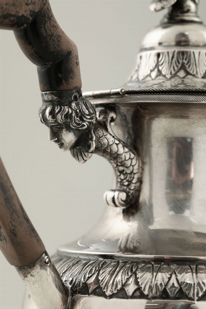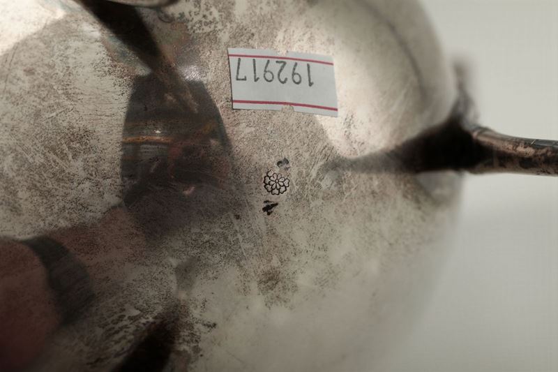 Molten, embossed and chiselled silver and ebonised wood. Unidentified stamp. 1020gr, H 34.5cm