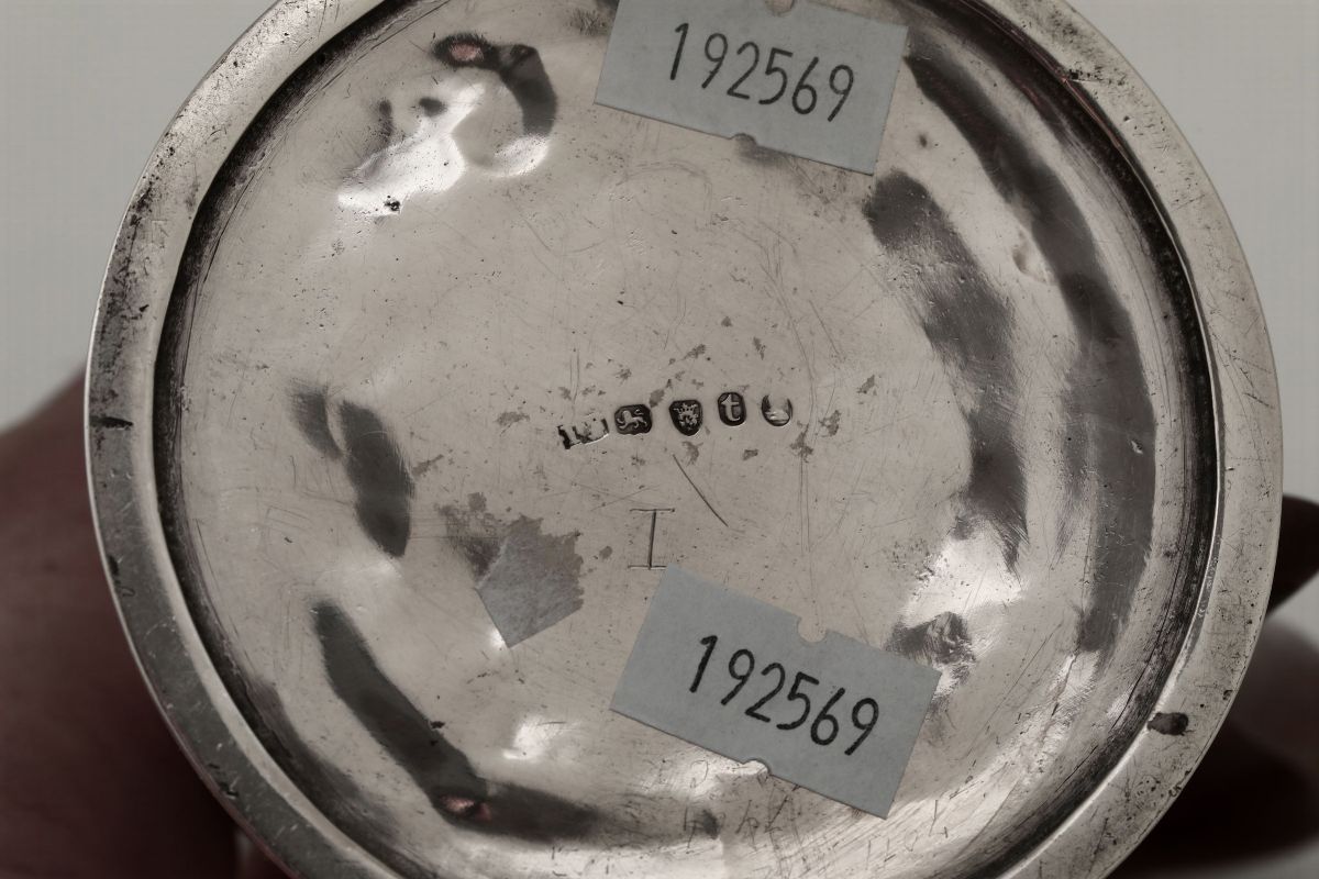 Molten, embossed and perforated silver. 250gr, H 18cm