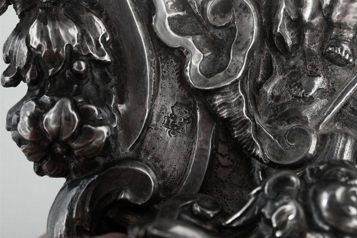 Molten, embossed and chiselled silver. 245gr, H 26cm