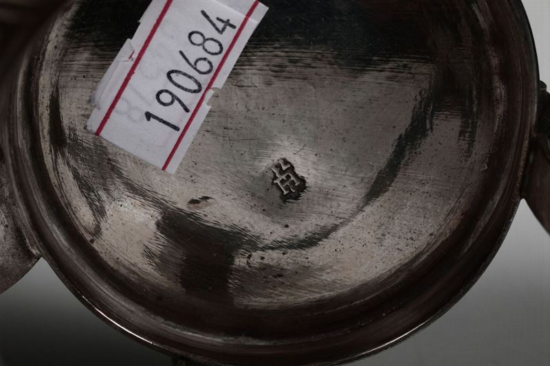Molten, embossed and chiselled silver and glass. 390gr, H 25cm