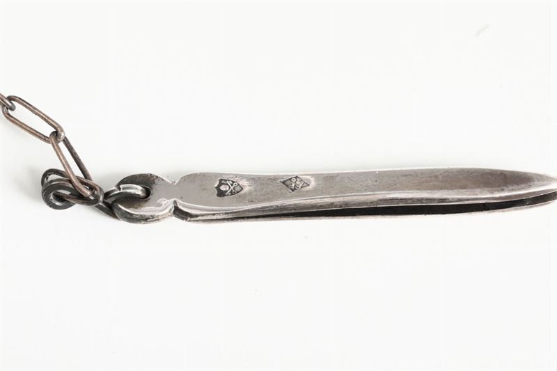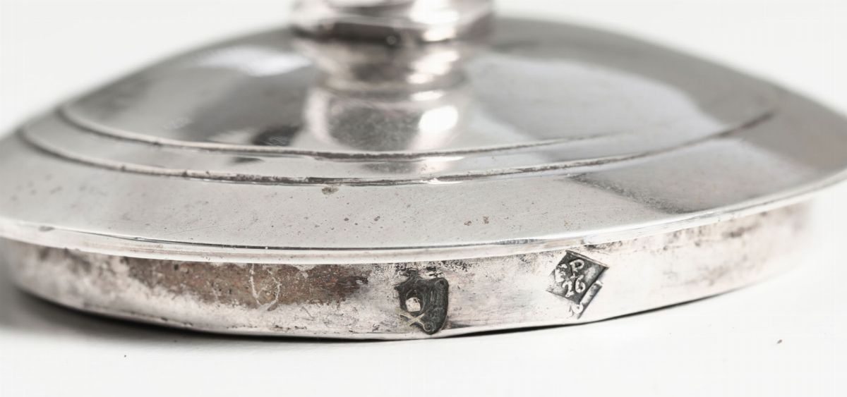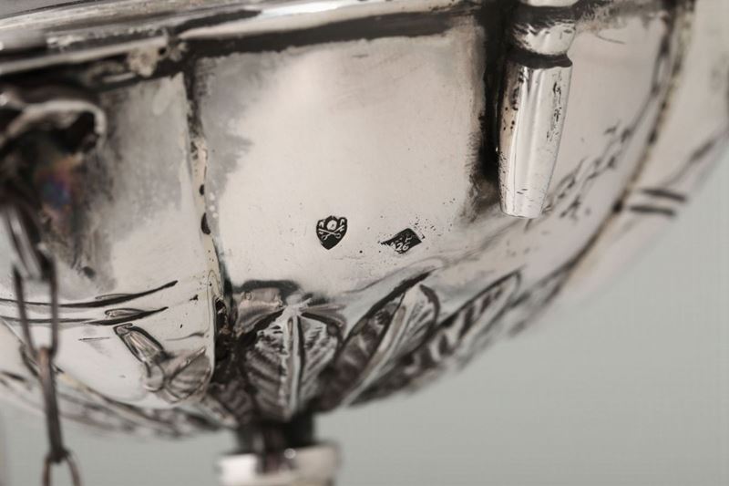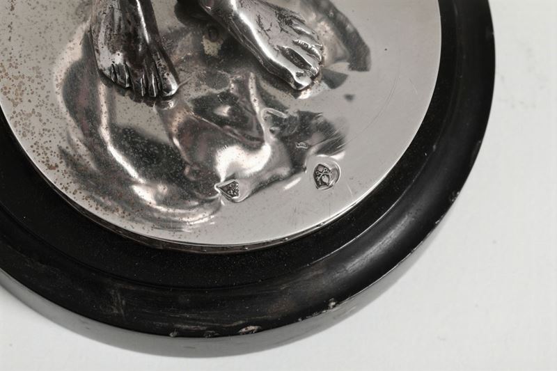 Molten, embossed and chiselled silver and black marble. 810gr, H 28.5cm