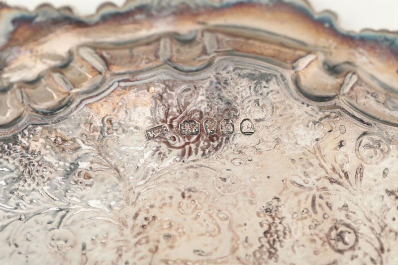 Molten, embossed and chiselled silver. 520gr, diam 22cm