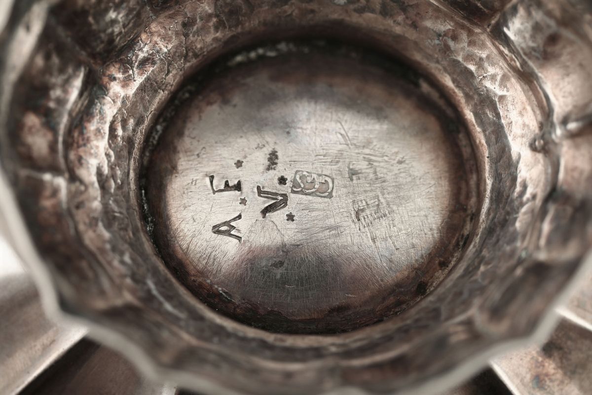 Molten, embossed and chiselled silver. Mark for silversmith GGS. 160gr, 14x11.5x8.5cm