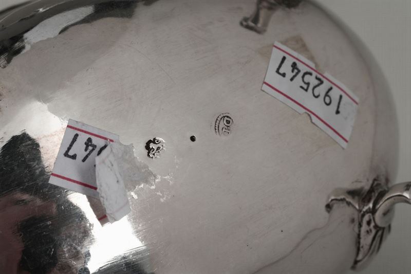 Molten, embossed and chiselled silver. Unidentified stamps. 219gr, 13x10.5x8.5cm