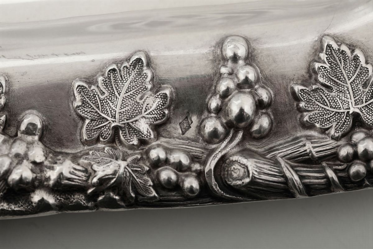 Molten and chiselled silver. Likely from France. 2240gr, 61x39cm