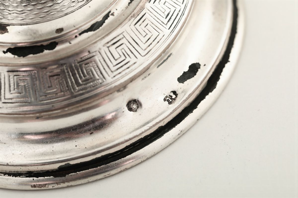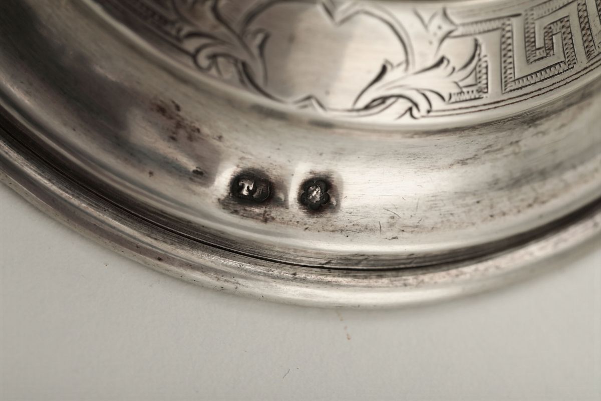 Molten and chiselled silver. Title stamps in use from 1866 to 1922 and for silversmith T.I. (unidentified). 410gr, H 19.5cm