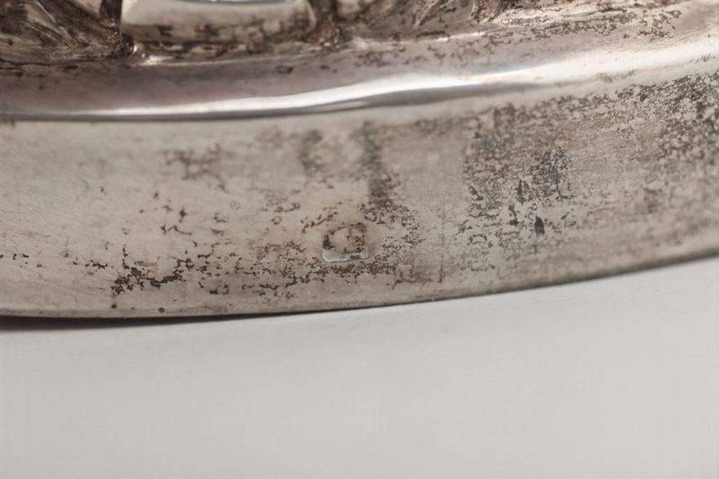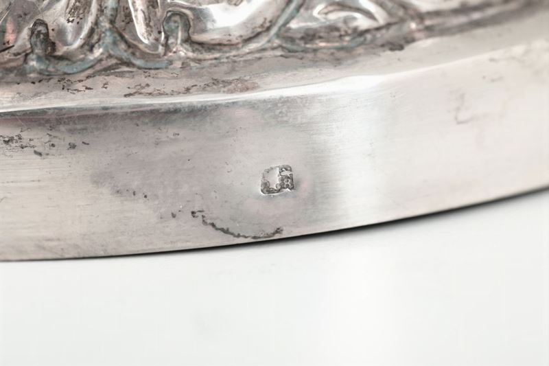 Molten, embossed and chiselled silver. Title guarantee stamps in use from 1835 to 1863. 800gr, H 45cm