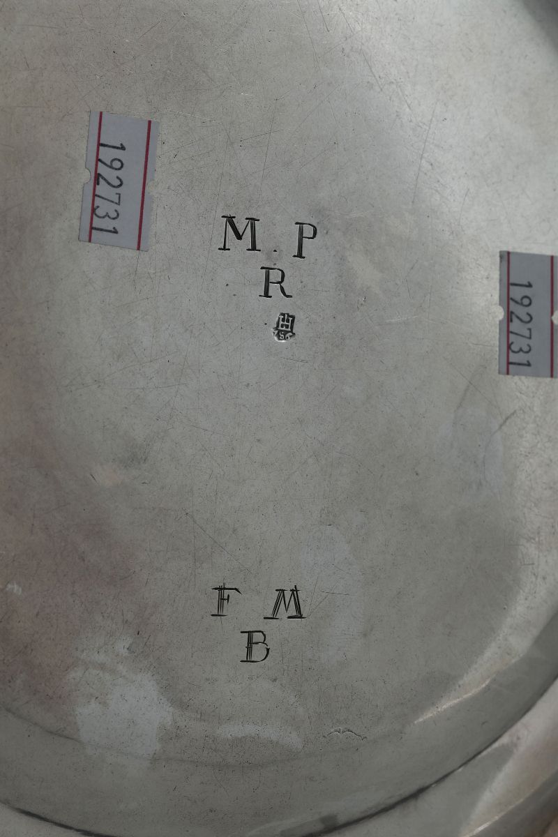 Embossed and chiselled silver. 915gr, diam 24.5cm