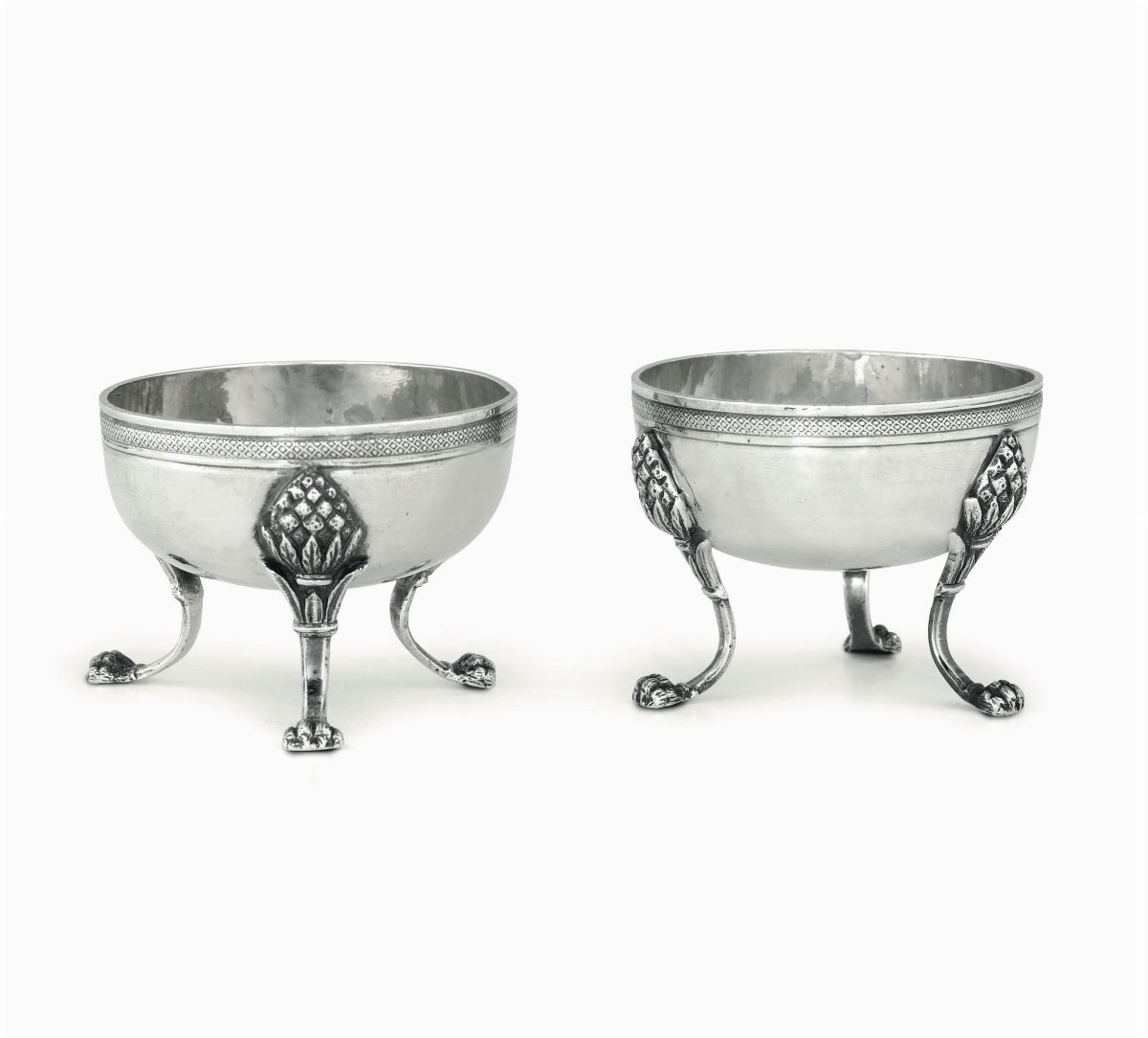 Two silver salt bowls, Naples, 1800s