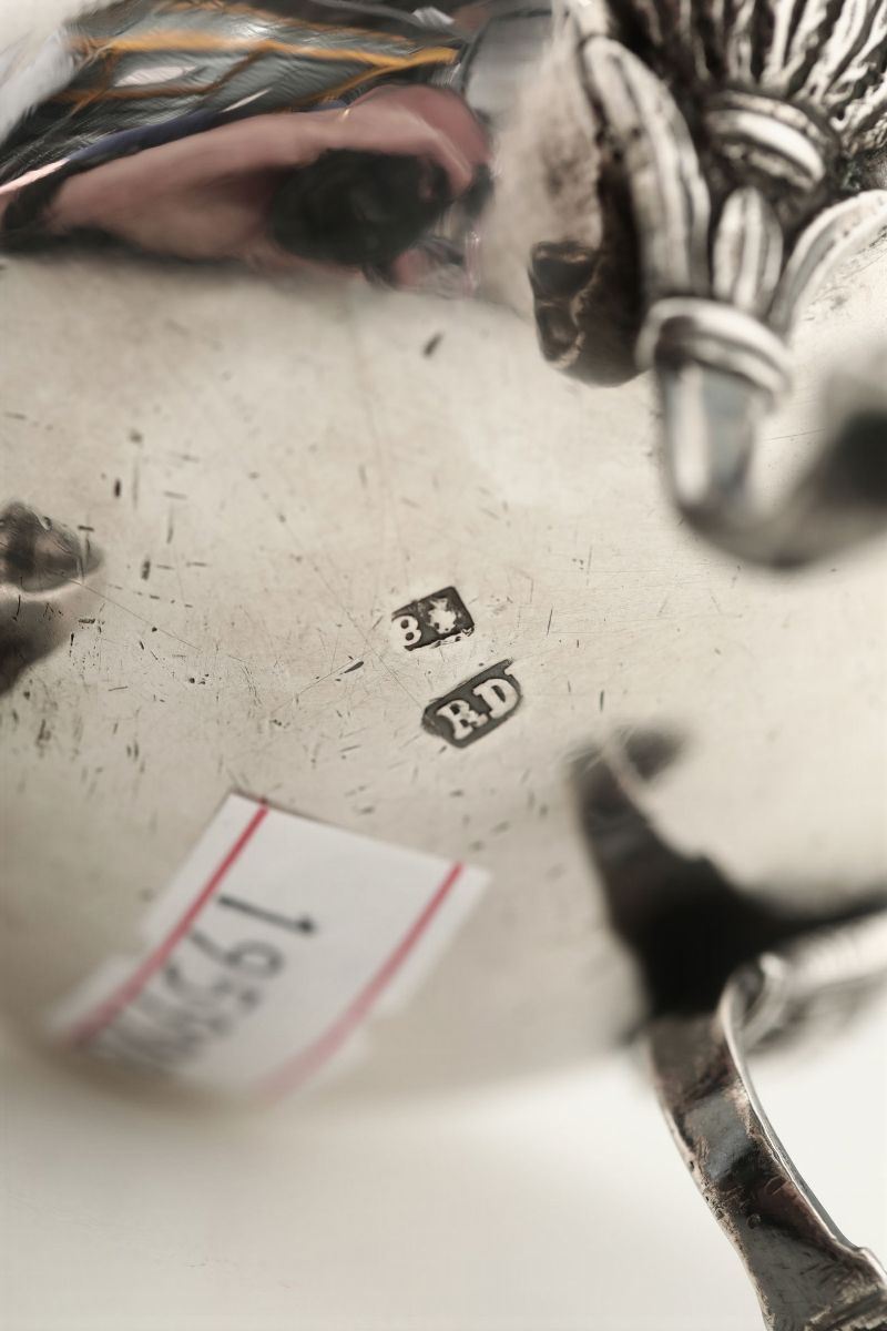 Molten, embossed and chiselled silver. 153gr, H 5cm