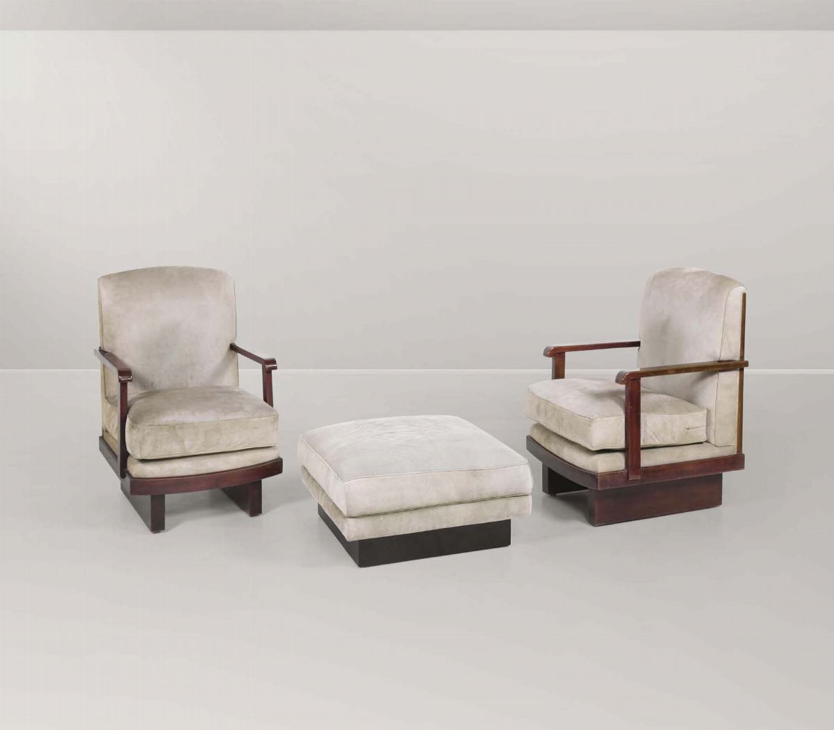 A wooden velvet upholstered sofa. Production of Valabrega, Italy, circa 1940. 264x105x102 cm