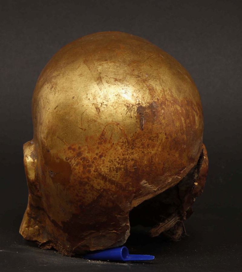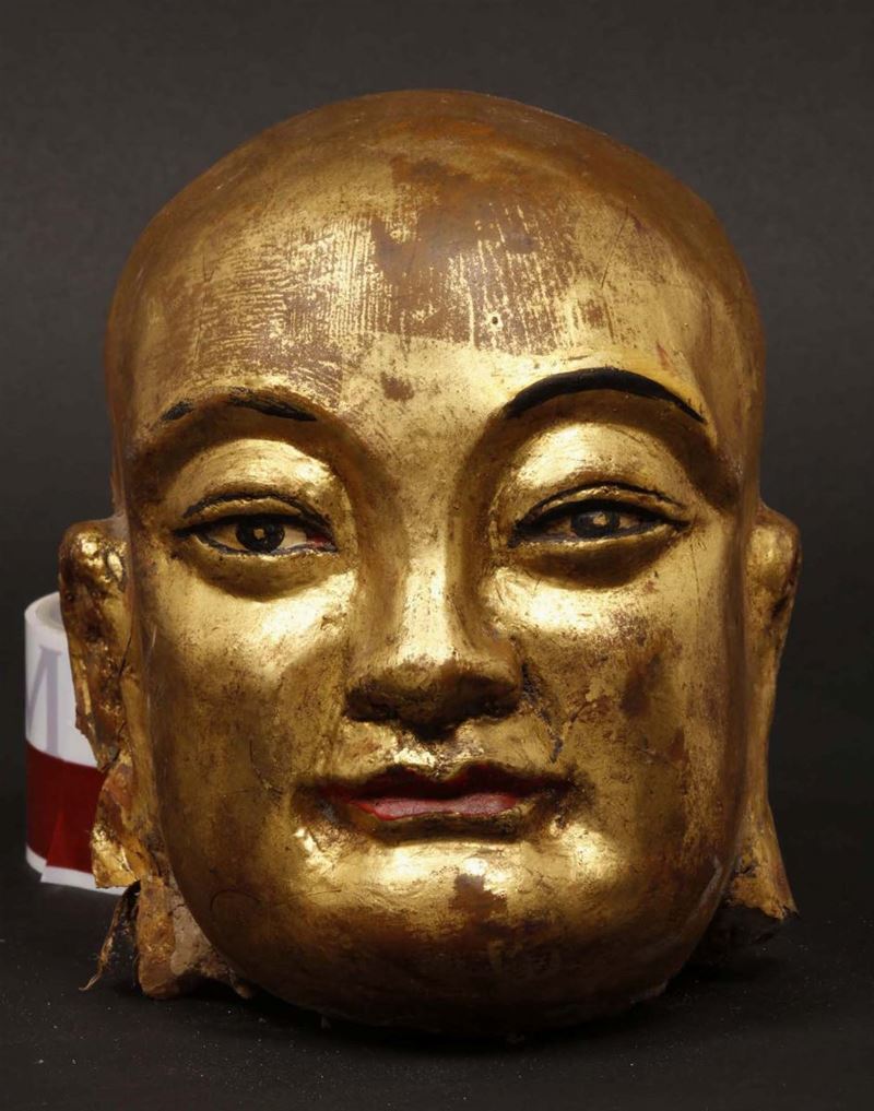 A gilt and painted stucco Luohan's head, China, Qing Dynasty, 19th century