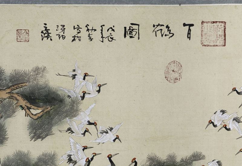 Herons and an inscription. 78.5x116cm