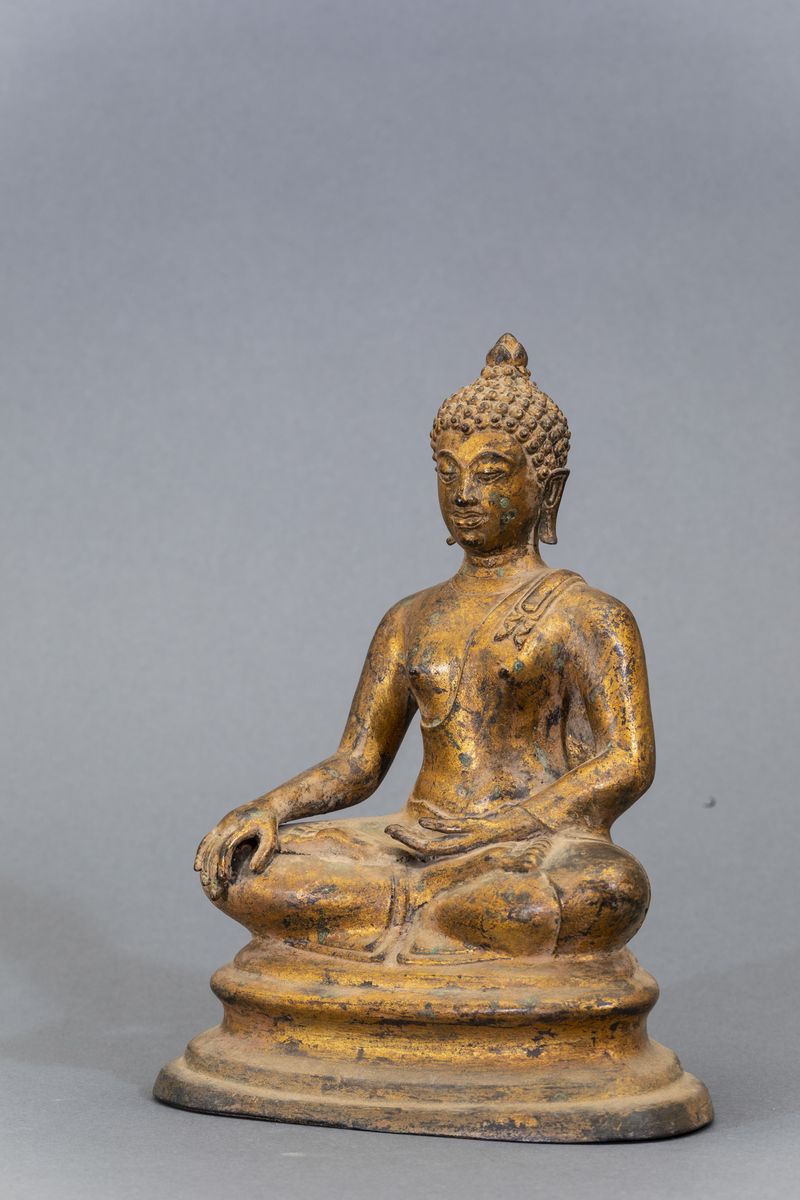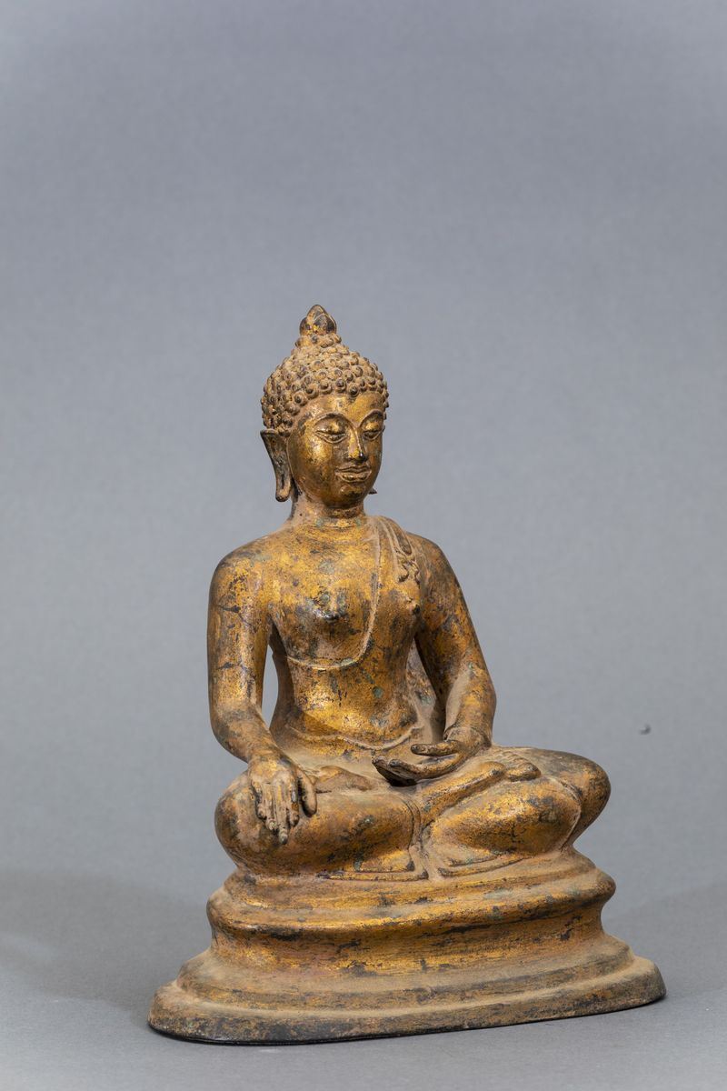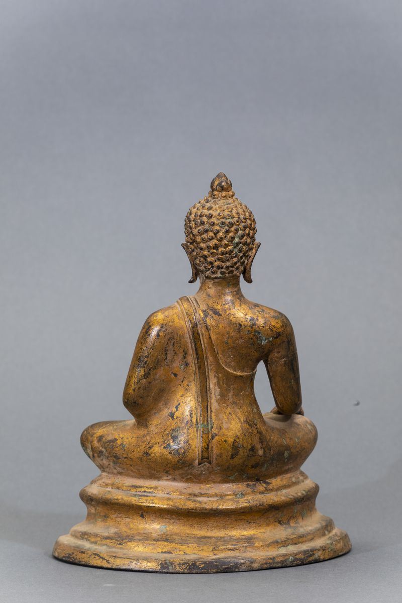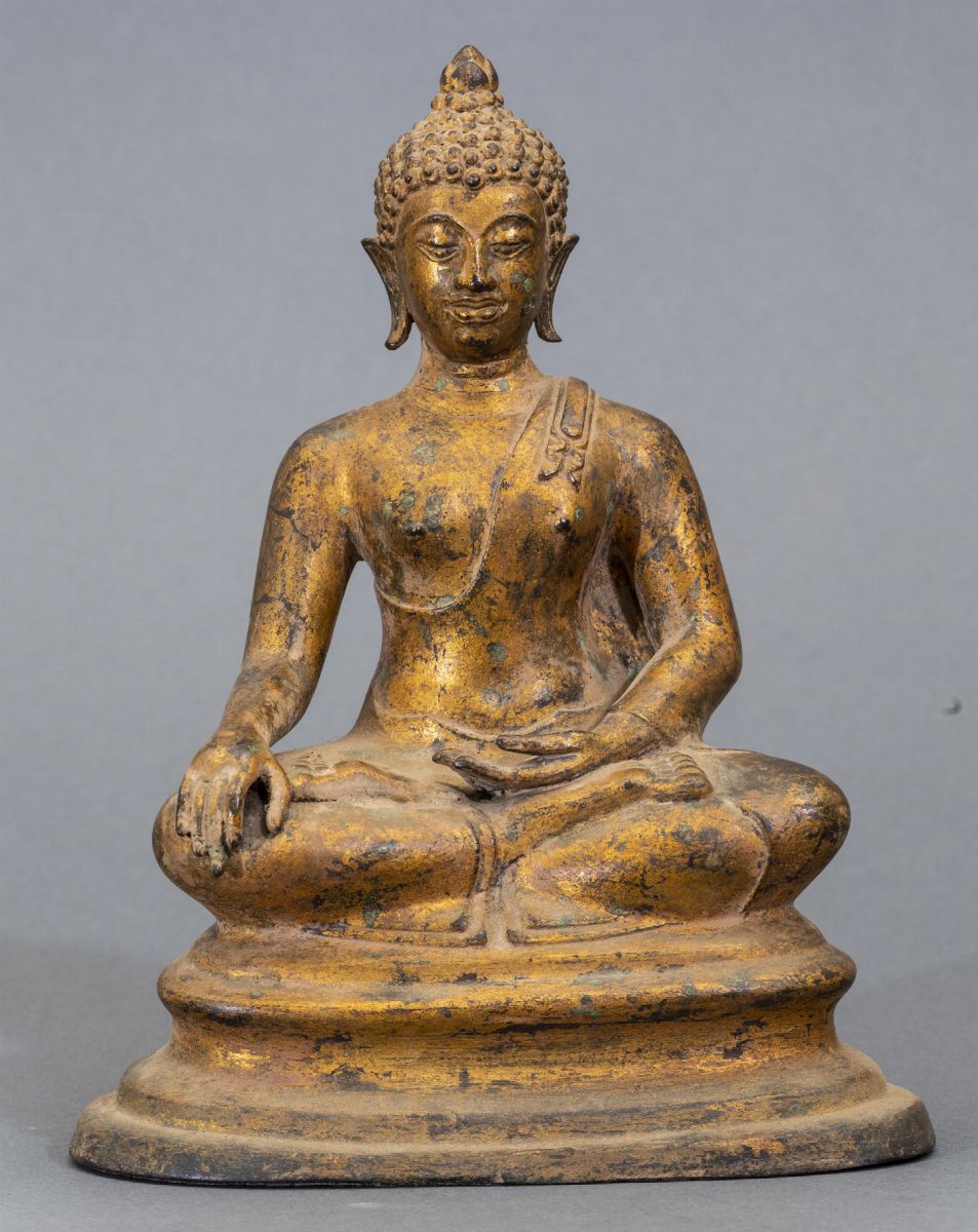 Figura di Buddha Sakyamuni seduto in bronzo dorato, Thailandia, XX secolo