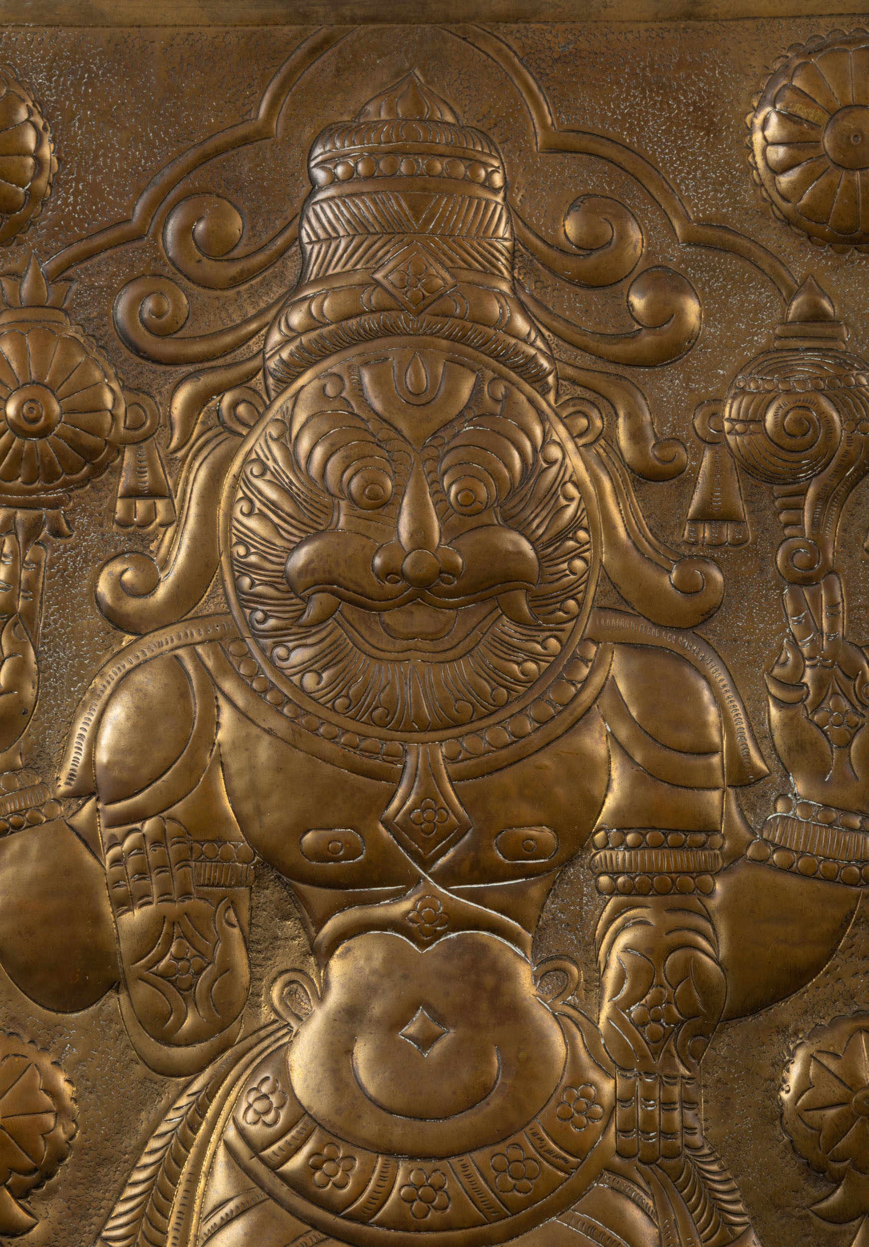 Placca in bronzo lavorata a bassorilievo raffigurante divinità , India, XIX-XX secolo