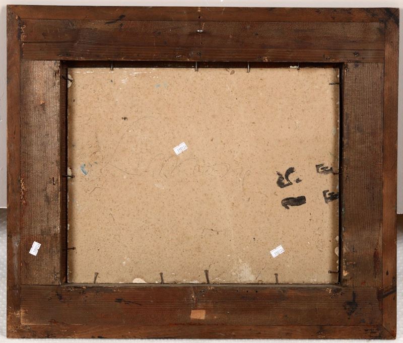 olio su cartone, cm 35x45, firmato e datato 1927 in basso a destra (difetti)