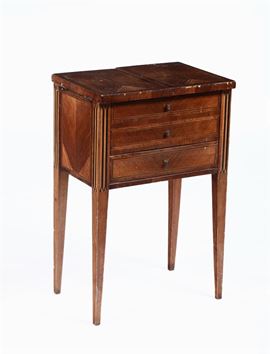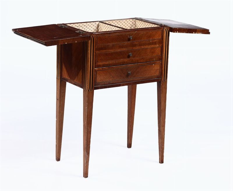 Tavolino da lavoro impiallacciato in noce ed altre essenze, XIX secolo