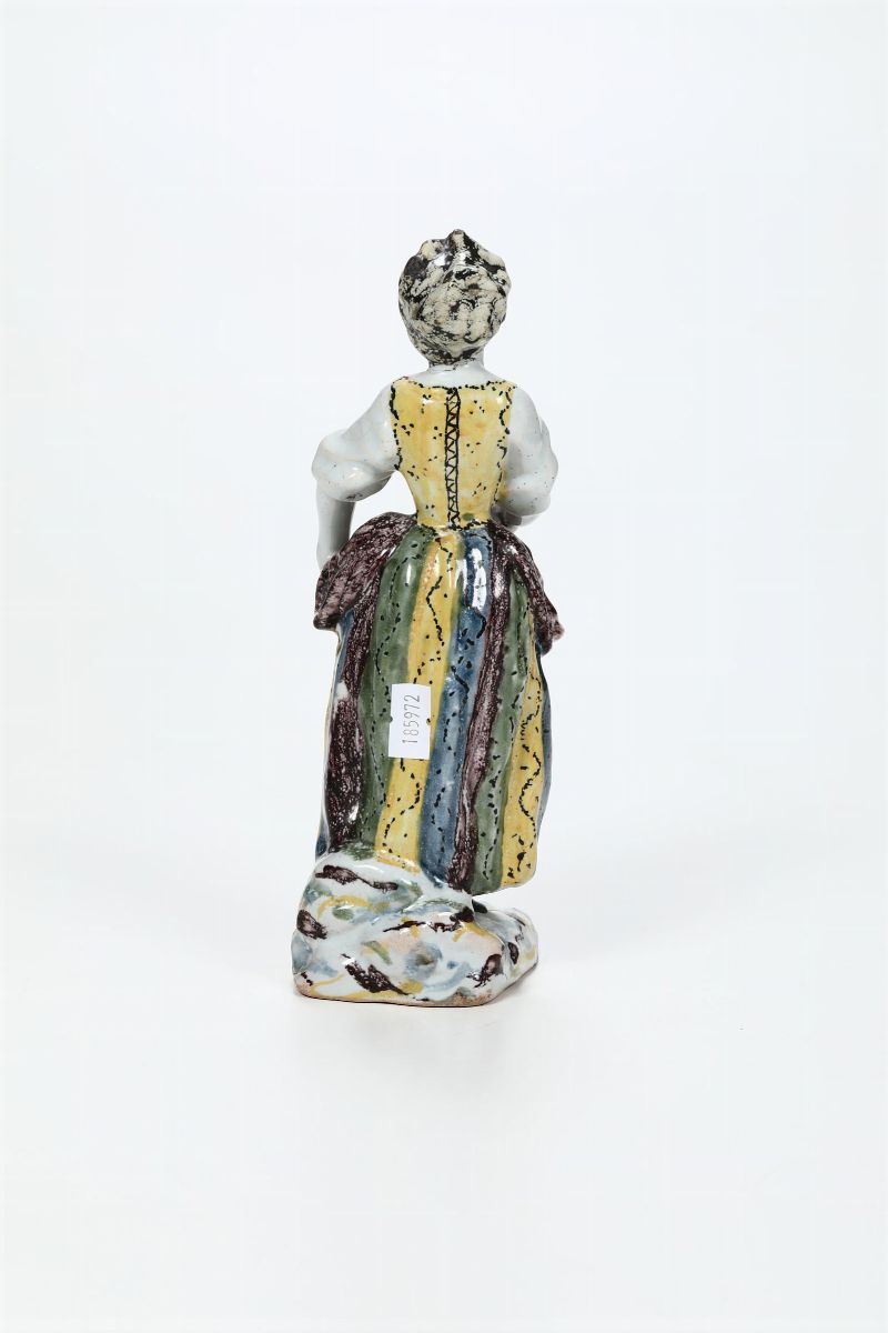 Maiolica policroma a gran fuoco. Marca: assente. Altezza cm 21,6. Testa rincollata