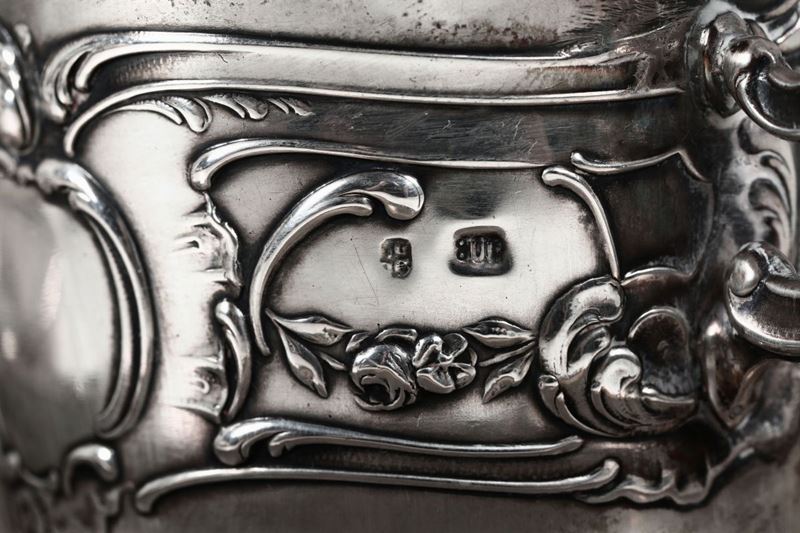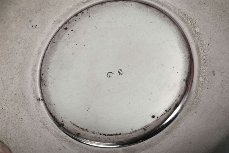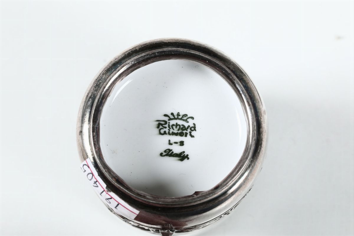 Gruppo di 5 tazzine da caffè in porcellana Ginori con piattini e cucchiaini in argento, XX secolo