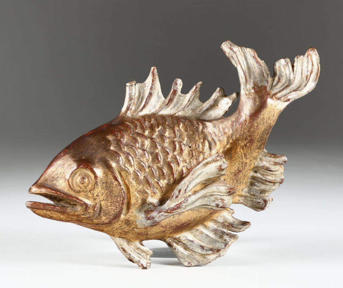 Pesce in legno scolpito e dorato, XIX-XX seoclo