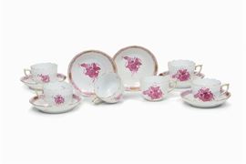 Sei tazze da caffè con piattino “Apponyi fucsia reale” Herend, secondo quarto del XX secolo